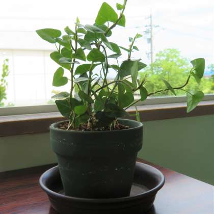 2週間前の6日(金)に、ハートヘデラの伸びた枝をカットし、ビーカーに入れました。