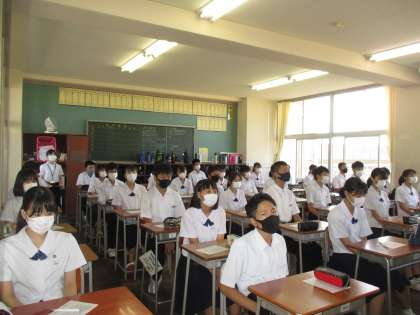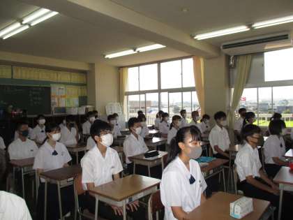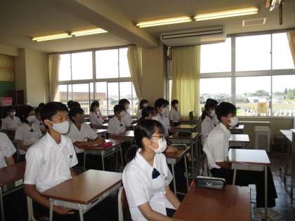2年・始業式 公開日 2021/08/27 更新日 2021/08/27 2年生 8月27日(金) 1限 新型コロナウイルス感染症対策のため、各教室にて始業式に参加しました。 校長先生のお話を真剣に聞いてい手います。 (写真 上:2年1組 中:2年2組 下:2年3組)
