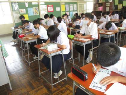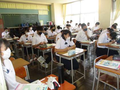 2年・学活・その2 公開日 2021/08/27 更新日 2021/08/27 2年生 8月27日(金) 3限 3限の学活は、2学期の目標を書き、決意を新たにしました。 (写真 上:2年1組 どんな2学期にしようかな?) (写真 中:2年2組 興南中の顔となるって?) (写真 下:2年3組 タイム君(生活ノート)も新しくなり…)