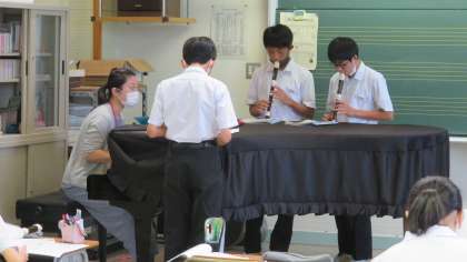 新型コロナウィルス感染症対策のため、現在、音楽の授業での歌唱活動は控えています。