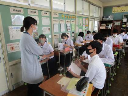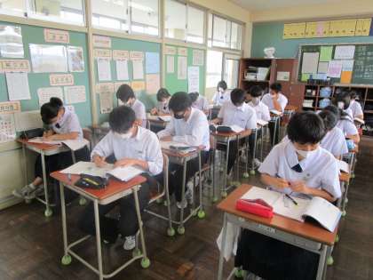 3年・授業風景 公開日 2021/09/03 更新日 2021/09/03 3年生 9月3日(金) 2限 学習に集中して取り組める環境になってきました。 3年生はどの教科も熱心に取り組んでいます。 (写真 上:3年1組 技術 作物への肥料の蒔き方) (写真 中:3年2組 数学) (写真 下:3年3組 家庭科 絵本づくり)