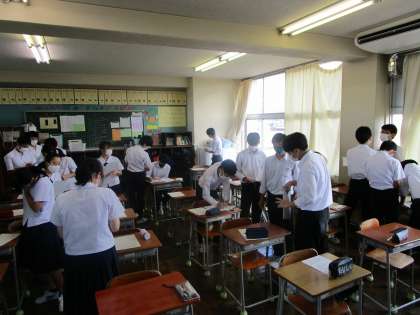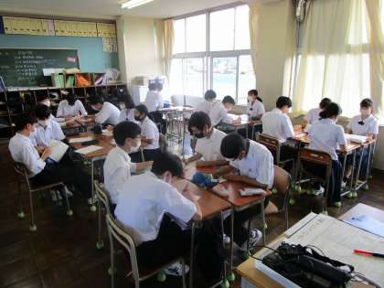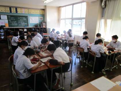 学活の時間に夏休み中に参加したオーブンハイスクールについて発表しました。