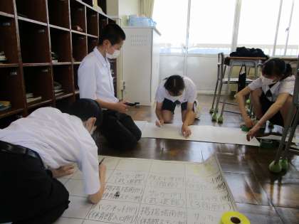 体育大会に向けて 公開日 2021/09/10 更新日 2021/09/10 今日の興南中 9月10日(金) 15:50 体育大会に向けた活動も順調に進んでいます。 (写真 上:練習場所割を作成する体育大会実行委員会) (写真 中:赤鳳団 下:白虎団)