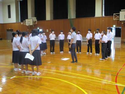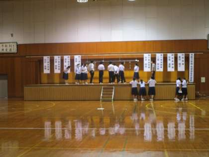来週13日(月)の生徒会役員選挙立会演説会のリハーサルが終了した後、選挙管理委員は会場準備を行いました。