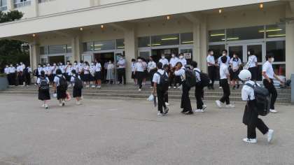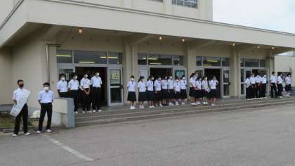 最後の訴えが生徒玄関前に響いています!(写真:下)