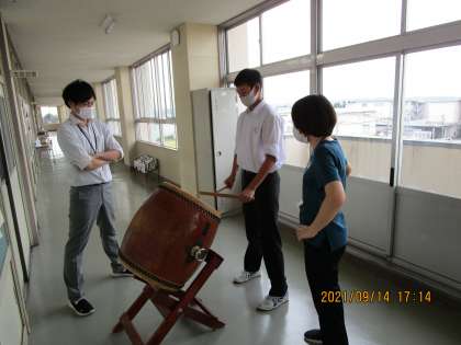 (写真 上:よさこいの練習 下:太鼓が登場!)