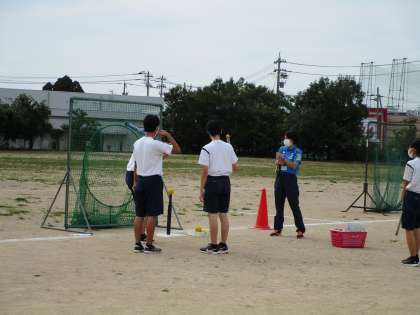 教育実習生・研究授業 公開日 2021/09/14 更新日 2021/09/14 今日の興南中 9月14日(火) 6限 3年2組の保体は、教育実習生・竹澤先生が研究授業を行いました。 ソフトボール競技で、バッティングのフォームをグループで話し合ったり、クロムブックで自分の姿を撮影し、見たりするなど創意あふれる内容の授業でした。