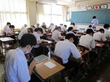 3年・授業風景 公開日 2021/09/16 更新日 2021/09/16 3年生 9月16日(木) 4限 確認テストを終えた後も、3年生は授業を頑張っています。 (写真 上:3年1組 数学) (写真 中:3年2組 理科) (写真 下:3年3組 国語)