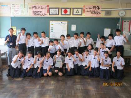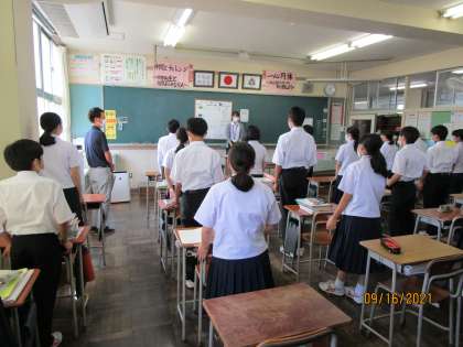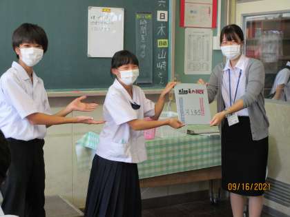 教育実習最終日 公開日 2021/09/16 更新日 2021/09/16 1年生 9月16日(木) 終学活 3週間が経ち、教育実習生とのお別れの日になりました。 河上先生には、一緒に過ごした1年3組からサプライズでお礼の言葉や色紙のプレゼントがありました。 先生にとっても生徒にとっても、ステキなお別れになったと思います。 (写真 上:学級の代表から) (写真 中:河上先生とともに) (写真 下:最後のさようなら)