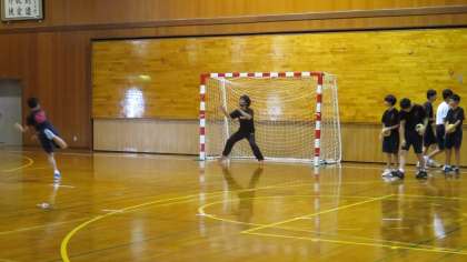 体育館では、ハンドボール部が元気に練習しています!