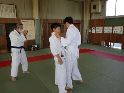 9月20日(月)の部活動・その2 公開日 2021/09/20 更新日 2021/09/20 今日の興南中 9月20日(月) 15:30 武道館で柔道部が活動をしています。 今日は「大外刈り」の練習です。 (写真 上:右側の部員が真ん中の部員に技をかけます。 真ん中の部員を左側の部員が後ろから支えています) (写真 中:技がかかった瞬間) (写真 下:今度は「大内刈り」の練習です。)