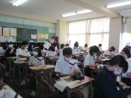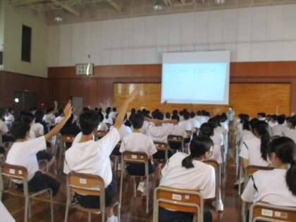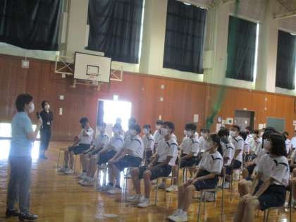 来月に行われる「金沢校外学習」に向けて、学年集会を行いました。