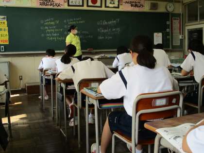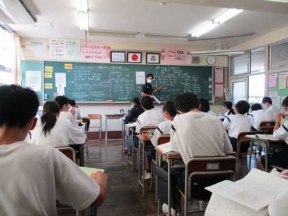 1年・授業風景 公開日 2021/09/24 更新日 2021/09/24 1年生 9月24日(金) 3限 1,2限にグラウンドで団活動をした後でしたが、切り替えて授業に取り組んでいました。 明日は午前中に予行練習や団活動をした後、午後から6年生が授業や学校の雰囲気を見に来ます。 先輩としての凜々しい姿を見せてもらいたいと思います。 (写真 上:1年1組 社会の授業) (写真 中:1年2組 数学の授業) (写真 下:1年3組 英語の授業)