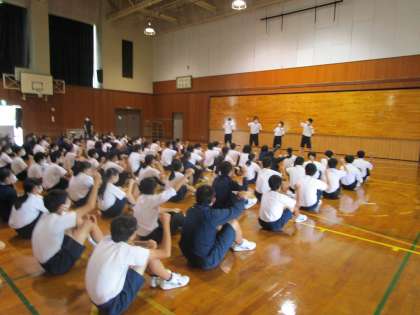3年生は、明日の体育大会に向けて学年集会を開きました。