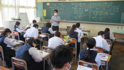 1年・授業風景 公開日 2021/10/01 更新日 2021/10/01 1年生 10月1日(金) 4限 10月(神無月)になり、一気に秋の気配が…… まさに「学習の秋」、授業に集中しています! (写真 上:1年1組 国語の授業) (写真 中:1年2組 英語の授業) 「今日から道木先生が担当します。よろしくお願いします!!」 (写真 下:1年3組 数学の授業)