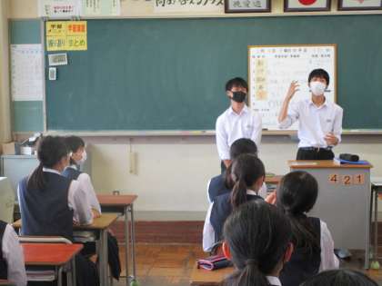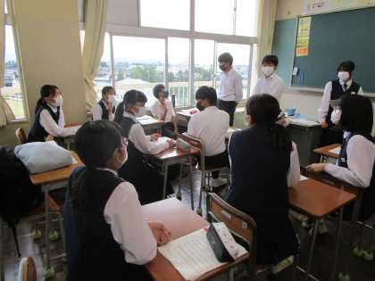 「星座」の練習が終わった後、1,2年生リーダーから学級でのアドバイスの方法について質問があり、その質問に対して3年生リーダーが答えました。
