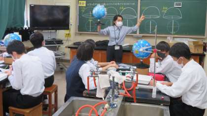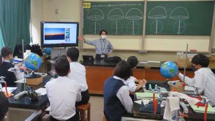 3年3組の理科は、「緯度の違いによって太陽の動きが異なる理由を明らかにしよう」を学習課題に、ミニ透明半球を使って実験しました。
