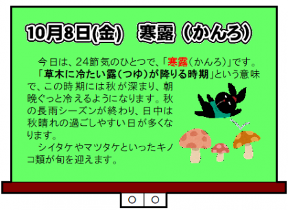 今日は、24節気の一つ「寒露(かんろ)」です。