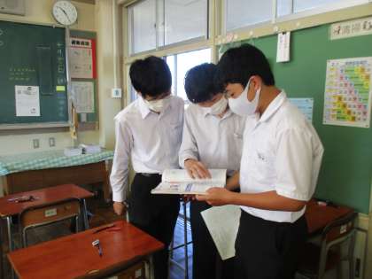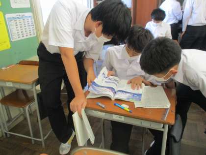 2年・最後まで見直しを! 公開日 2021/10/07 更新日 2021/10/07 2年生 10月7日(木) 休み時間 中間評価1日目です。 わずかな休み時間に、どのクラスでも最後の見直しをしています。 (写真 上:2年1組 中:2年2組 下:2年3組) 最後まであきらめずに頑張れ!