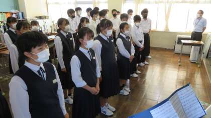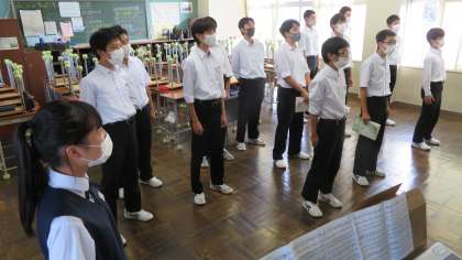 3年・放課後合唱練習 公開日 2021/10/08 更新日 2021/10/08 3年生 10月8日(金) 14:25 中間評価が終わり、3年生は「合唱モード」に切り替えです。 (写真 上:3年1組 中:3年2組 下:3年3組) 特に、男声パートの元気によさが目立ちました!