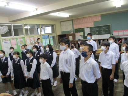 1年・放課後合唱練習 公開日 2021/10/11 更新日 2021/10/11 1年生 10月11日(月) 15:20 今日も清掃終了後に合唱コンクールに向けて合唱練習を行いました。 どのクラスも練習が始まる時間前には合唱体形で並び、チャイムが鳴ると同時に始まりました。 気合いが入っていますね。 (写真 上:1年1組 リーダーからの振り返り) (写真 中:1年2組 黒板に今日の目標に注目) (写真 下:1年3組 練習風景)