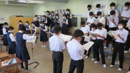 3年1組の音楽は、合唱コンクールに向けて、全体合唱していました。