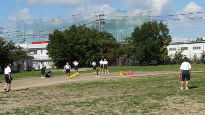 秋晴れのもと、まさに「ソフトボール日和」です。(写真:中)