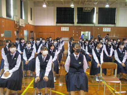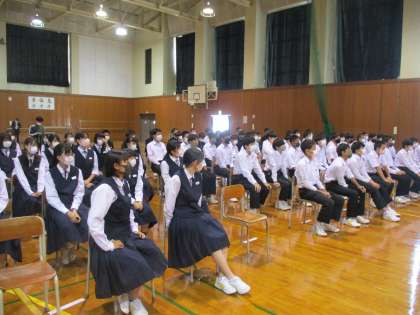 2年・学年合唱リハーサル・その2 公開日 2021/10/19 更新日 2021/10/19 2年生 10月19日(火) 3限 全クラスのリハーサルが終わり、本番に向けて石金先生からアドバイスがありました。 クラスの合唱が少しでもよくなるようにと、生徒は身を乗り出して聞いています。