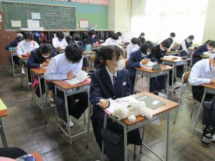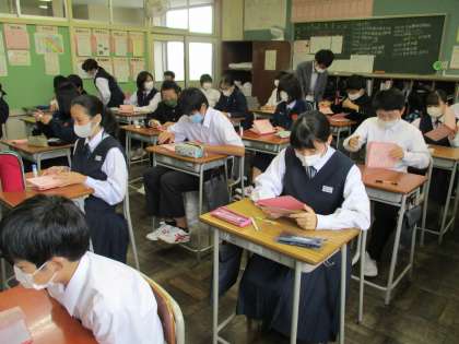 1年・高岡校外学習について 公開日 2021/10/20 更新日 2021/10/20 1年生 10月19日(水) 4限 校外学習のしおりを配布しました。 生徒は、係などの自分の出番があるところにマーカーを引いたりして、日程等を確認しました。 来週28日(木)が出発です。 朝、早いですが、お弁当の準備をお願いします。 (写真 上:1年1組 中:1年2組 下:1年3組)