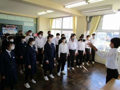 2年・朝合唱練習 公開日 2021/10/22 更新日 2021/10/22 2年生 10月22日(金) 8:10 本番を明日に控えて、頑張って声を出しています。 気になる箇所を重点的に練習しているようです。 (写真 上:2年1組 中:2年2組 下:2年3組)