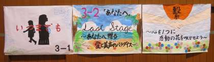 「興南のつどい」特集・その15 公開日 2021/10/23 更新日 2021/10/23 今日の興南中 ▲3年・各クラスの合唱スローガン 10月23日(土) 11:20 3学年発表が始まりました。 ▼司会進行の合唱コンクール実行委員会