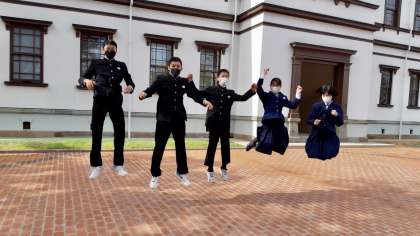 2年・金沢校外学習・その7 公開日 2021/10/27 更新日 2021/10/27 今日の興南中 10月27日(水) 9:40 加賀本多博物館見学を終了し、気持ちをジャンプで表現してみました。 きれいに決まっています!