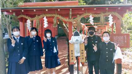今回、石浦神社に立ち寄る班がたくさんあります。