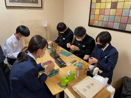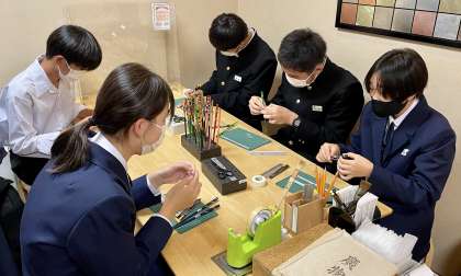 箸にマスキングテープを巻き、金箔を模様として貼り付けていきます。