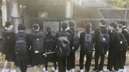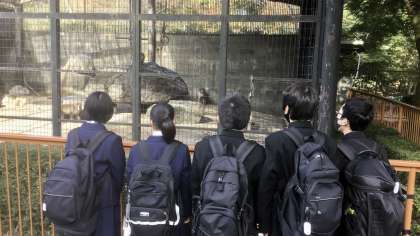 10月28日(木) 9:00 高岡古城公園の動物園に着きました。 班で仲よく動物見てま〜す!