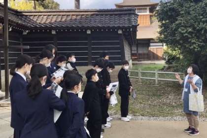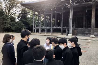 1年・高岡校外学習・その16 公開日 2021/10/28 更新日 2021/10/28 今日の興南中 10月28日(木) 14:30 3組は、勝興寺に着きました。 ガイドさんのお話を真剣に聞いています。