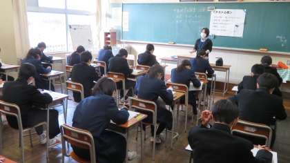 中教研学力調査・2日目 公開日 2021/11/05 更新日 2021/11/05 今日の興南中 11月5日(金) 1限 社会 中教研学力調査・2日目です。 (写真 上:1年2組 中:2年2組 下:3年2組) 復習してきた成果は出たのでしょうか?