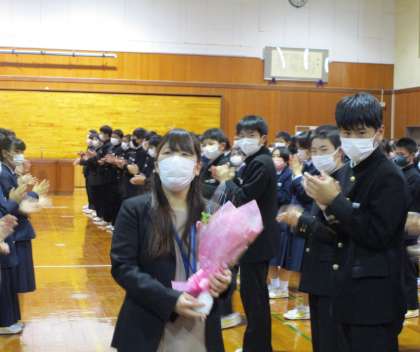 松本先生とともに活動した前期・後期保健実践部長から感謝の気持ちを伝える言葉と花束贈呈を行いました。