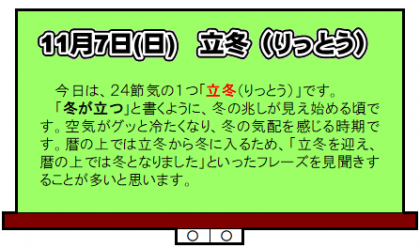今日は、24節気の一つ「立冬(りっとう)」です。