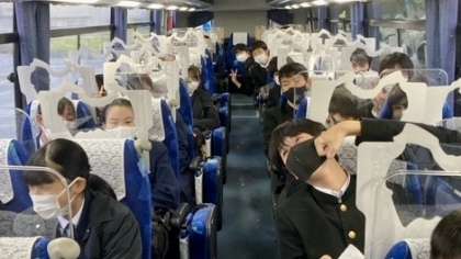 外は雨ですが、バスの中はカラッと晴れです!
