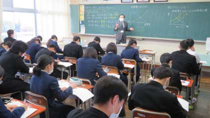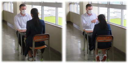 3年・授業風景 公開日 2021/11/10 更新日 2021/11/10 3年生 11月10日(水) 1限 気温は11度、天気はくもり。 昨日から天候が不安定で、本降りの雨になりそうです。 でも、教室は落ち着いて、授業に集中しています。 (写真 上:3年1組 理科 中教研学力調査の解説) (写真 中:3年2組 社会の授業) (写真 下:3年3組 英語 ALTマーク先生とのスピーチテスト)