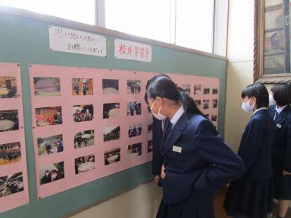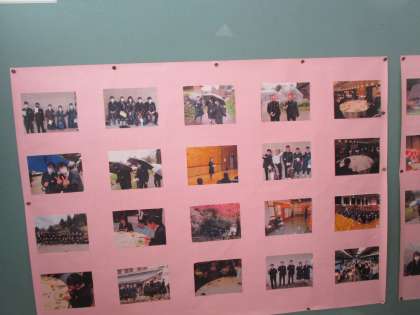 (写真 上:掲示の様子 下:掲示を見つめる3年生)