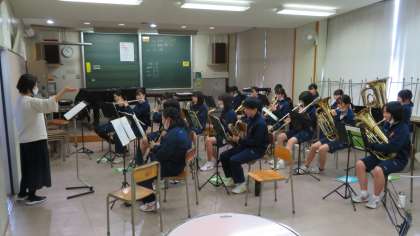 吹奏楽部は、何度も繰り返して、合奏練習をしていました。