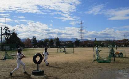 休日だとたっぷり練習時間が確保でき、顧問・コーチの指導のもと、守備練習・バッティング練習にと余念がありません。
