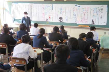 2年・授業風景 公開日 2021/11/18 更新日 2021/11/18 2年生 11月18日(木) 2限 期末評価1週間前です。 テストのポイントは聞き逃しません! (写真 上:2年1組 社会の授業) (写真 下:2年2組 国語の授業)