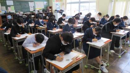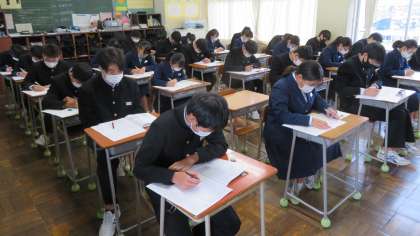 3年・市学力調査・1日目 公開日 2021/12/02 更新日 2021/12/02 3年生 12月2日(木) 1限 社会 3年は、今日から「市学力調査」が始まりました。 (写真 上:3年1組 中:3年2組 下:3年3組) 明日は、英語と数学です。 もうひとふんばりですね!