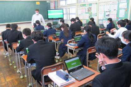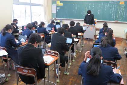 3年・授業風景 公開日 2021/12/08 更新日 2021/12/08 3年生 12月8日(水) 4限 外は激しい雨が降っていますが、授業は穏やかに進んでいます。 (写真 上:3年1組 英語の授業 … ALTマーク先生と一緒に) (写真 中:3年2組 理科の授業) (写真 下:3年3組 国語の授業 … クロムブックを活用して)