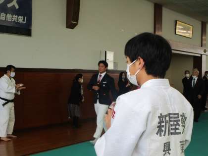 練習会冒頭に東京オリンピックメダリスト向選手による激励が行われました。