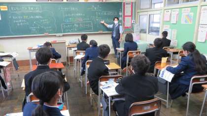 1年・授業風景 公開日 2021/12/13 更新日 2021/12/13 1年生 12月13日(月) 1限 気温が低く、冬の寒さを感じますが、教室内はエアコンで快適です! (写真 上:1年1組 社会の授業) (写真 中:1年2組 理科の授業) (写真 下:1年3組 数学の授業) 2学期もあと2週間です。 最後まで、授業に集中して臨みましょう!