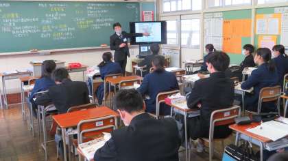 2年・授業風景 公開日 2021/12/16 更新日 2021/12/16 2年生 12月16日(木) 1限 2学期もあと1週間となりました。 学習の基本は「授業」です。 だから、授業はいつも集中して臨んでいます! (写真 上:2年1組 英語の授業) (写真 中:2年2組 家庭科の授業) (写真 下:2年3組 社会の授業)